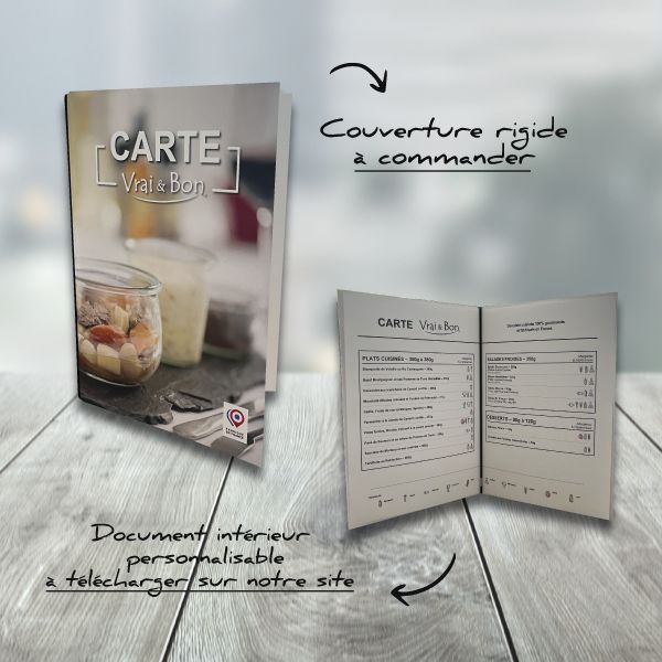 En plus de la Couverture rigide à commander, vous trouverez comment réaliser le Document intérieur personnalisable à télécharger sur notre site, rubrique Téléchargement documentation et supports de vente (les deux documents ci-dessous sont visibles en mode connecté, vous devez être enregistré avec un compte professionnel) :
